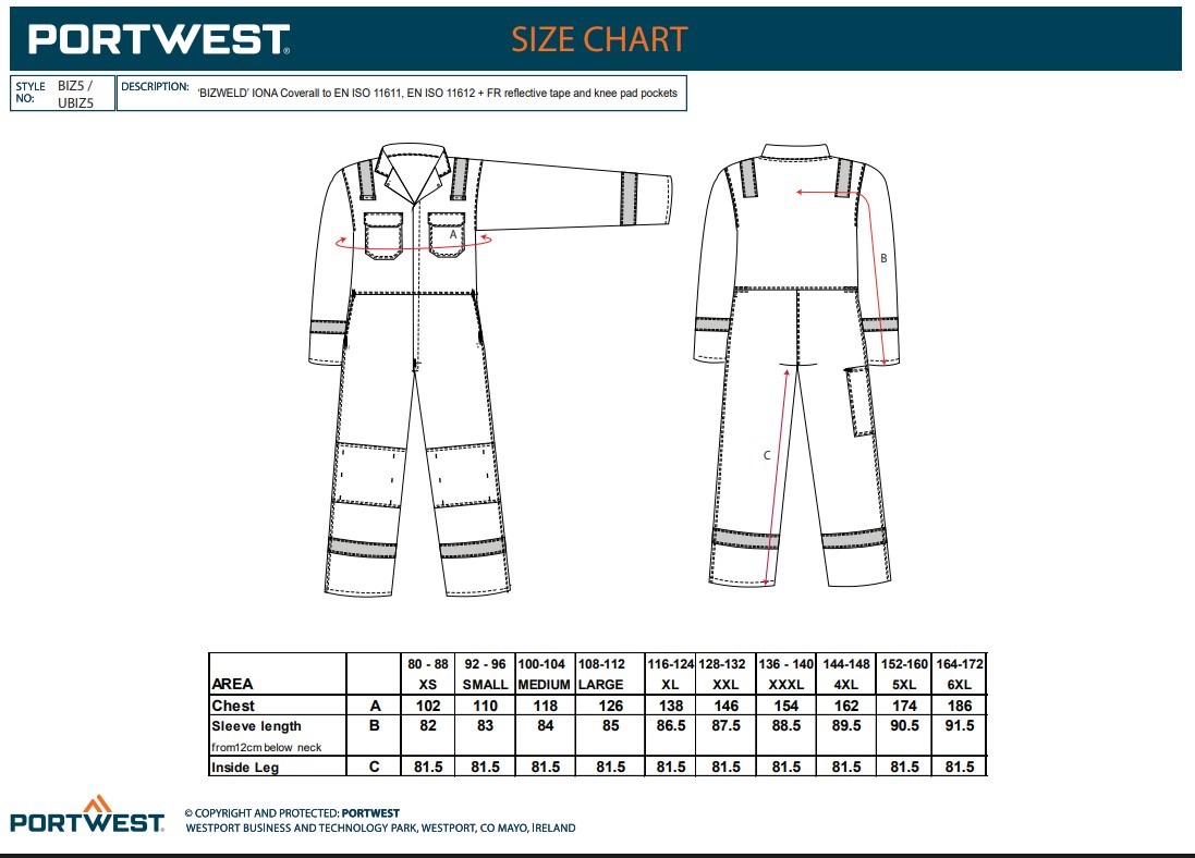 Portwest BIZ5 Bizweld Iona FR Coverall BIZ5