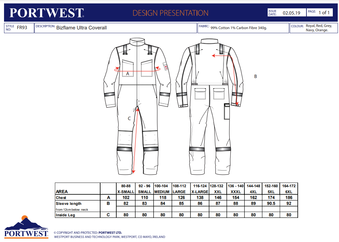 Datasheet - https://documents.portwest.com/datasheet.php?style=FR93&lang=GB&itemcol=FR93NAR&facility=902