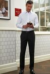 100% Superfine Polyester (43% Recycled) Flat front trouser, tailored fit, key loop, 2 side pockets, 1 rear pocket. Half hem width at waist size 34" = 21cm