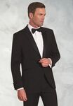 54% Polyester, 44% Wool, 2% Elastane. 1 Button fastening with satin faced peak lapels and pocket jetts, side vents