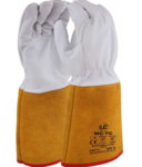 A Premium TIG Welding gauntlet made from high quality goat leather. Reinforced with a golden cow split leather cuff to offer superb protection to the wrist and lower arm. High tenacity aramid fibre stitching throughout adds longevity and further peace of mind for the lifetime of the glove.